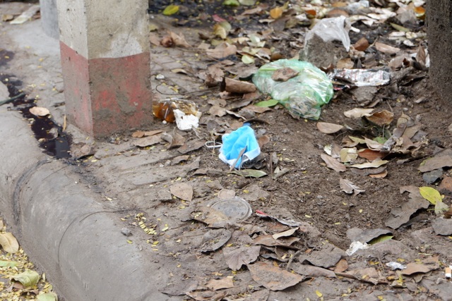 Những chiếc khẩu trang "vô chủ" hiện diện từ đường lớn đến ngõ nhỏ.